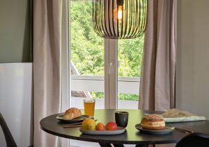 A large dining table invites you to dine together. The luxury kitchen is equipped with modern quality appliances: a refrigerator, induction hob, dishwasher and a Nespresso coffee machine.
